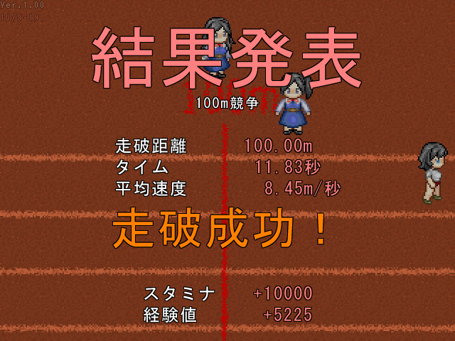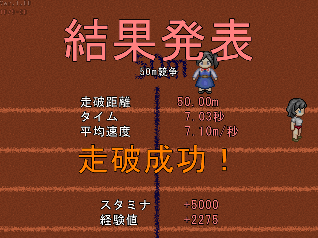 実はテストプレー時にはもっと好記録も出せたのですが、そのときは能力値を弄って全能力MAXにしたので計測外としました。