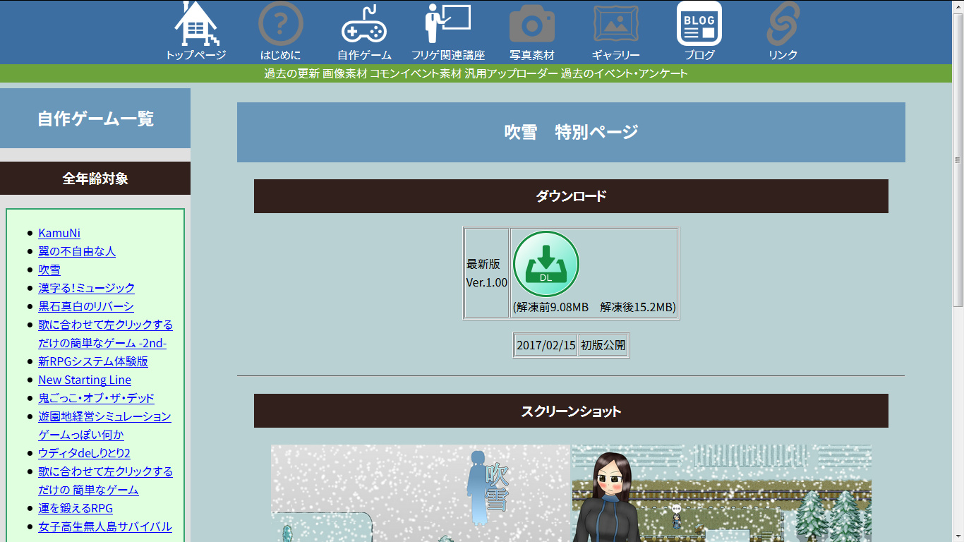 - 自作ゲーム「吹雪」「翼の不自由な人」にて、試験的に共通ヘッダーを設置