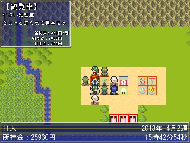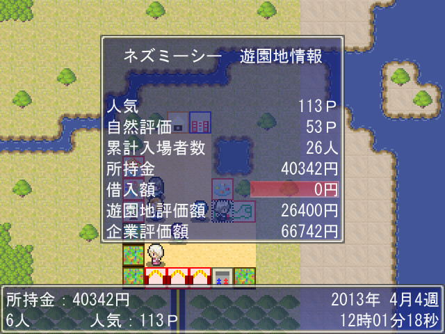 人気や累計入場者数、評価額の他、この画面で借金も可能。