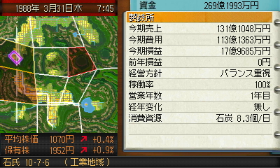 隣町との石油価格の利ザヤ+製油所の収入により、月の利益が50億円を突破。
