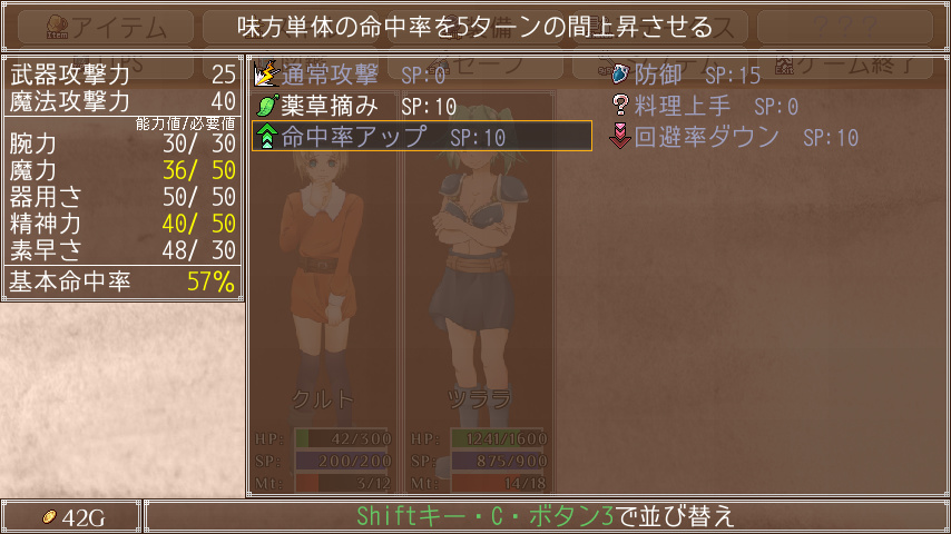 必要能力値システムの仕様上、敵のスキル成功率が大幅に下がる可能性がある。