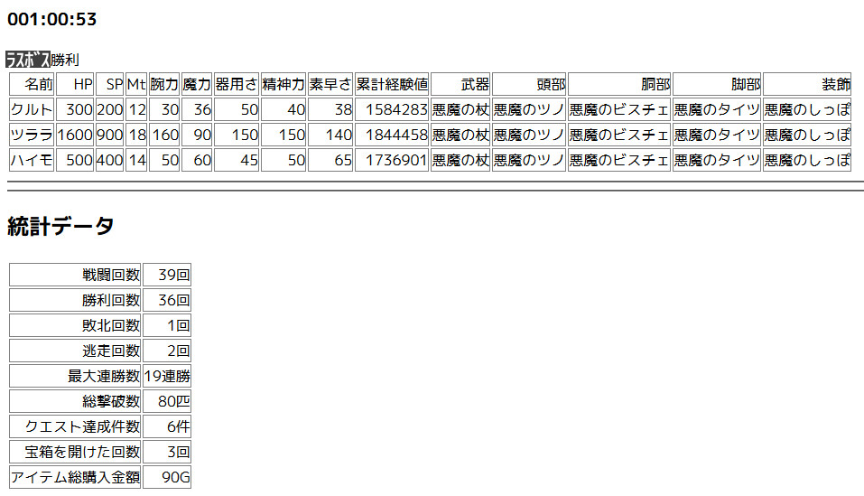 「経験値xxxゲット」「ゴールドxxxゲット」などの機能を持たせる。