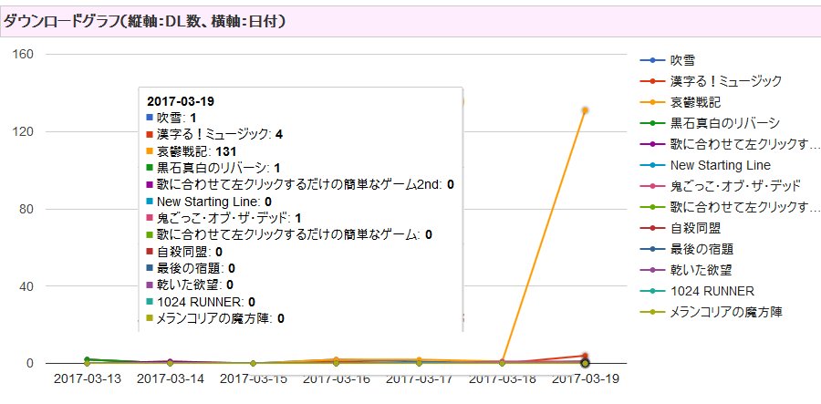その結果、3/19の哀鬱戦記のDL数が131に達する。