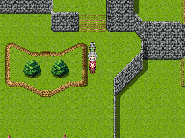 斜面の草地も斜めの段差もツクール2000版にはあるのに、マップチップ数の制限からかVX版では収録されず。