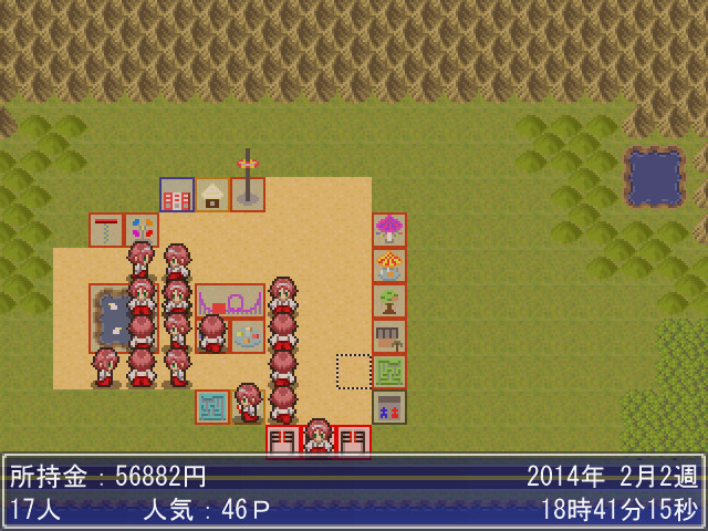 お客さんのルーチンの改良版が正常に動作しているかのチェックのために、来園客を巫女さんだけにした結果。