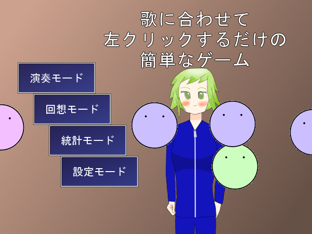 現在、「歌に合わせて左クリックするだけの簡単なゲーム」の完成版を制作中。
