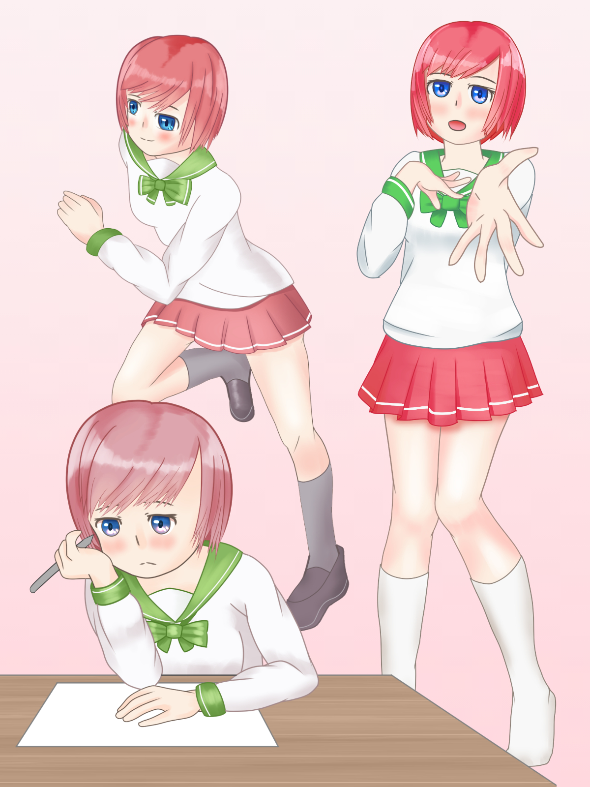 で、ポーズ集を参考に描いたイラストがこれ。