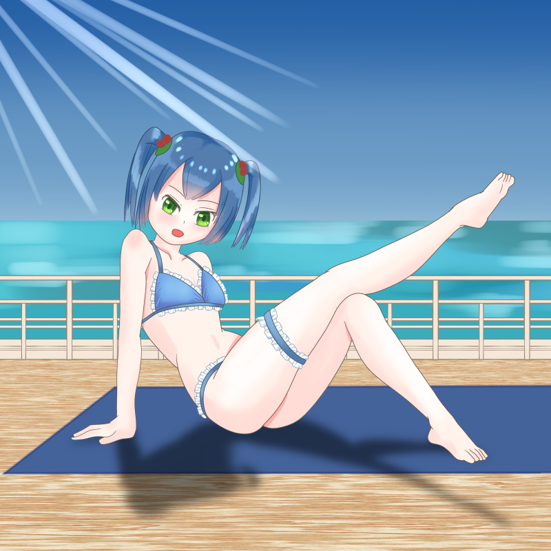 青いビキニを着た奈美。
