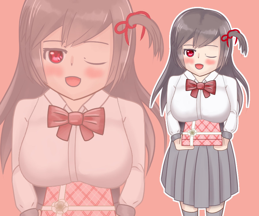 バレンタインのチョコでおっぱいを持ち上げるイメージ。