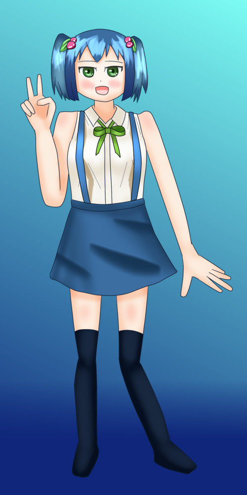 王道であるミニスカート+ニーソを装備させつつ、敢えて乳袋にしないことで万人受けを狙う。