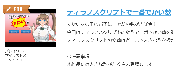 ティラノスクリプトで一番でかい数」も100プレイ行ってました。