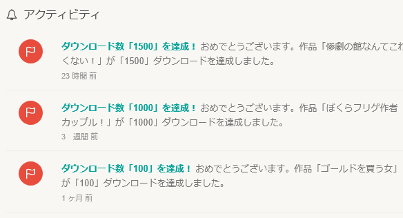 いつの間にか、1500DL達成でも通知が来る仕様になっていたようです。