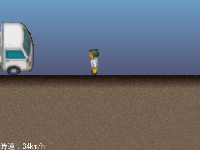 車のブレーキを操作して、男性にぶつかる直前で停めるゲーム。