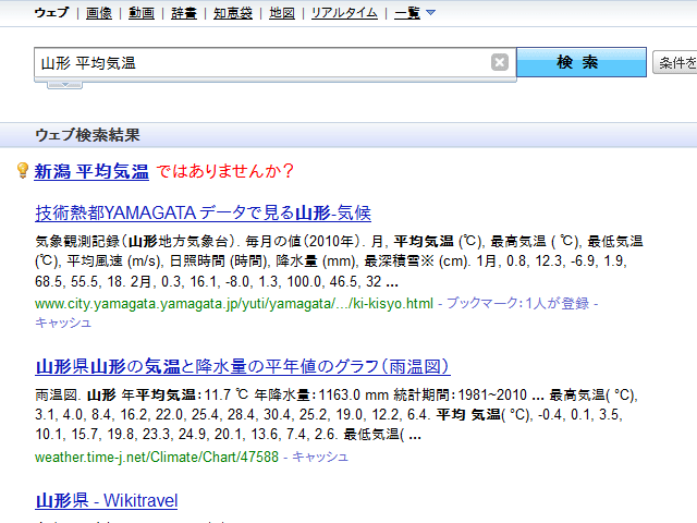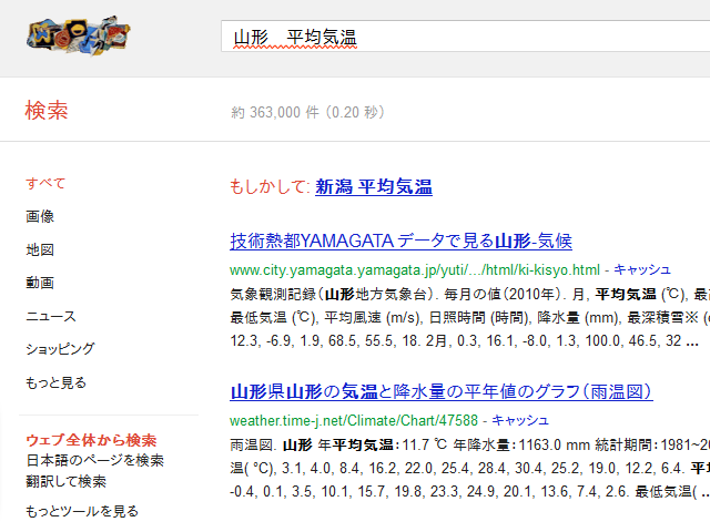 何気なく「山形 平均気温」で検索してみた結果。
