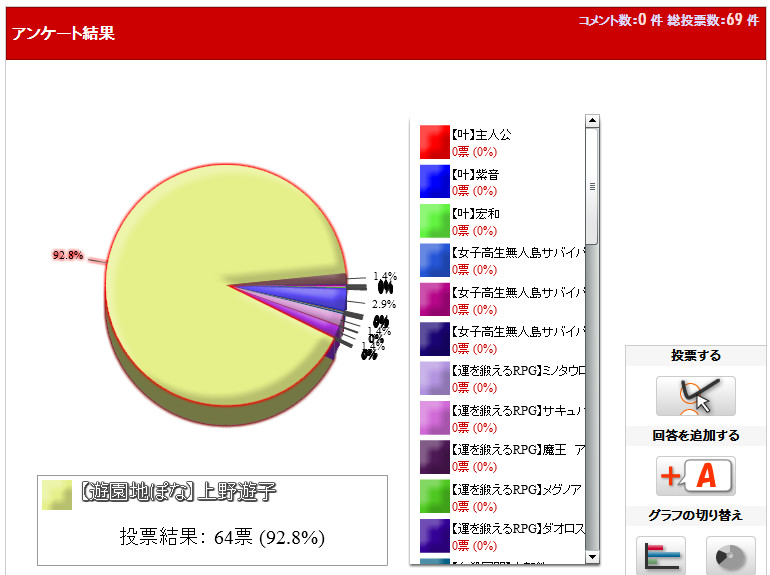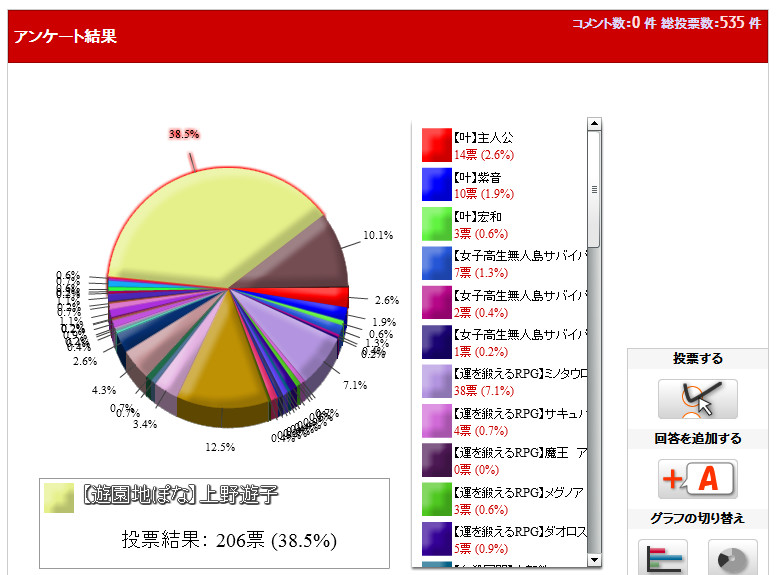 上野遊子に異常なまでに票が入っています。