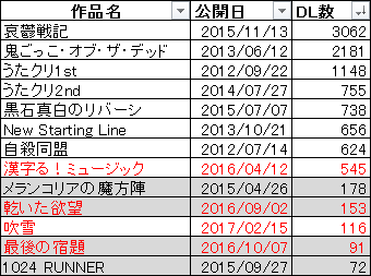 公開後の期間を考えても、今年1年だけで200DL未満の作品が3作品というのはいくらなんでも多すぎる。