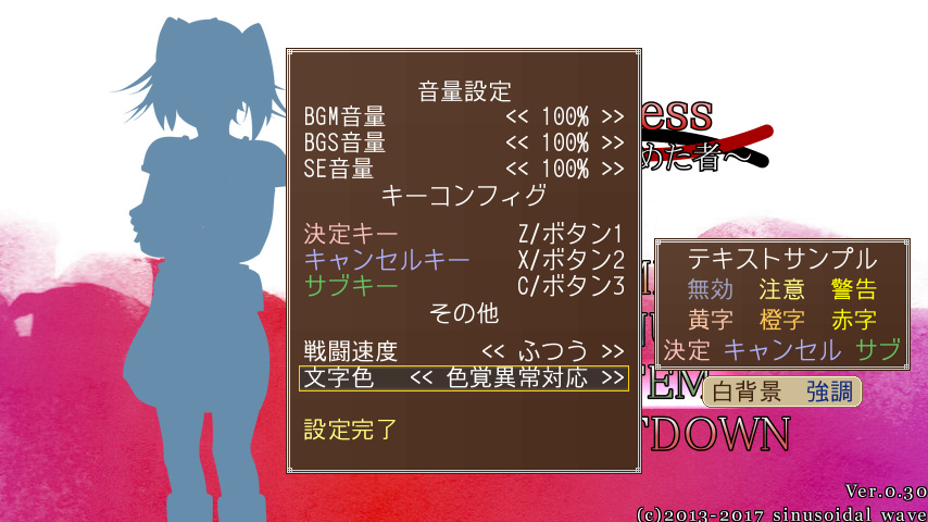 ・哀鬱戦記及び過去のsinusoidal wave作品のプレイ経験は不問。