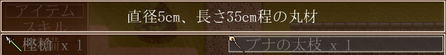 竹槍は樫槍に変更、ひのきの棒はブナの太枝に変更。