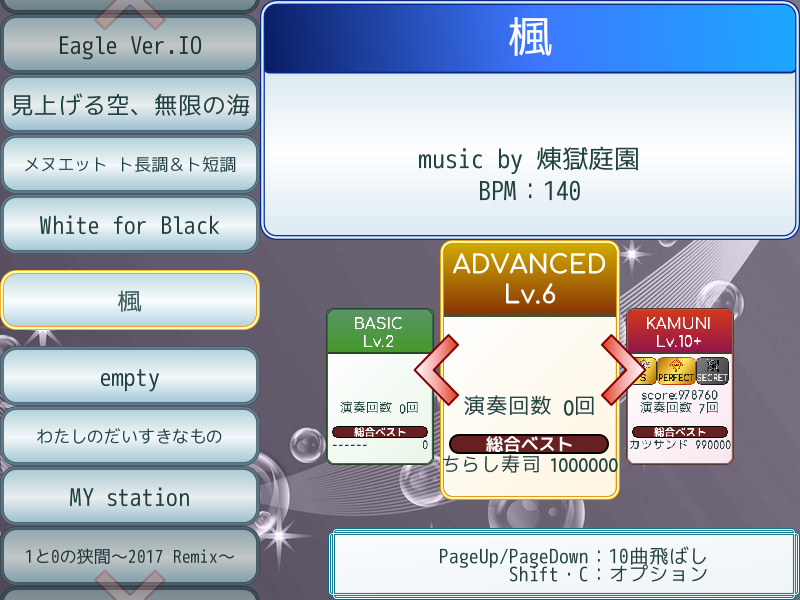 漢字る!時代からあった、選曲画面の総合ベストの表示を復活させました。