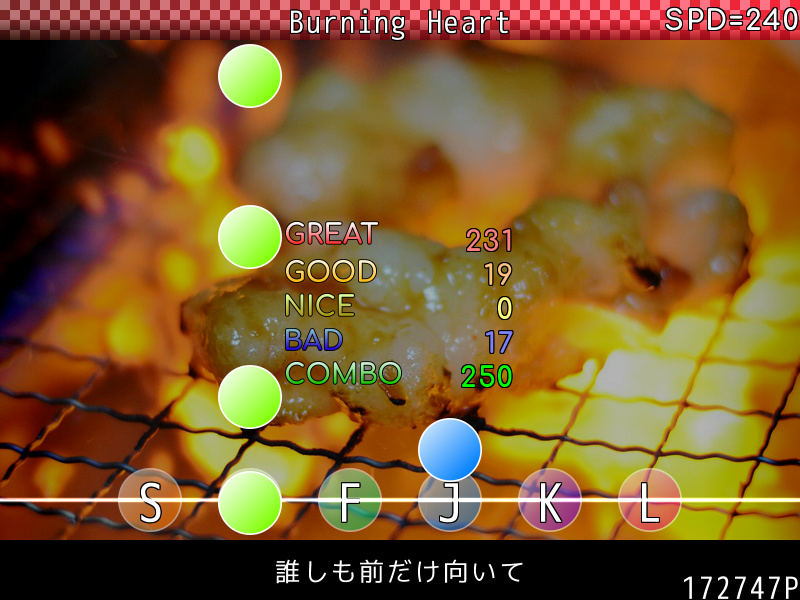 提案する表示情報自体は某社の別な音ゲーに近い仕様で、たぶんそれを意識したネタなのかもしれません。