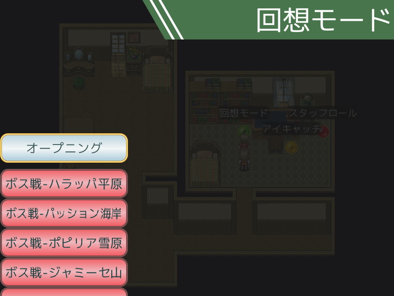 ストーリーモードクリア後、お祭り本部2階のアイちゃんの部屋に回想モード・アイキャッチ・スタッフロールが追加されます。
