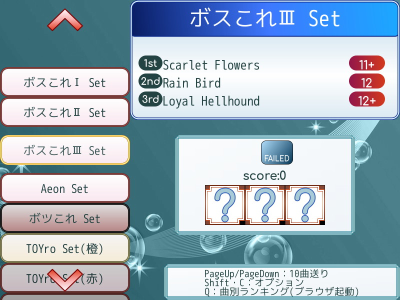 いずれも難易度が高すぎたり、譜面の特徴がありすぎるのがボツ理由。